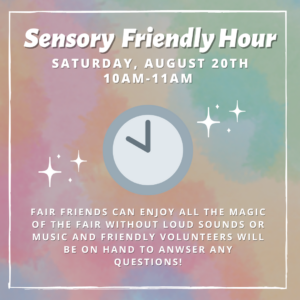 Join us for a new sensory-friendly hour at the Arlington County Fair on Sat., Aug. 20, 10am-11am! Fair friends can enjoy all the magic of the Fair without loud sounds or music and friendly volunteers will be on hand to assist as needed. Also new this year is a sensory break tent area set up during the sensory-friendly hour and various hours during the fair: